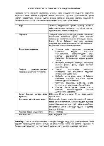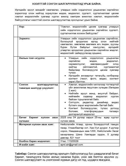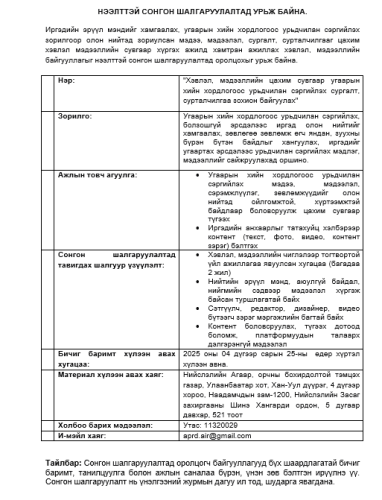 Нээлттэй сонгон шалгаруулалтад урьж байна.