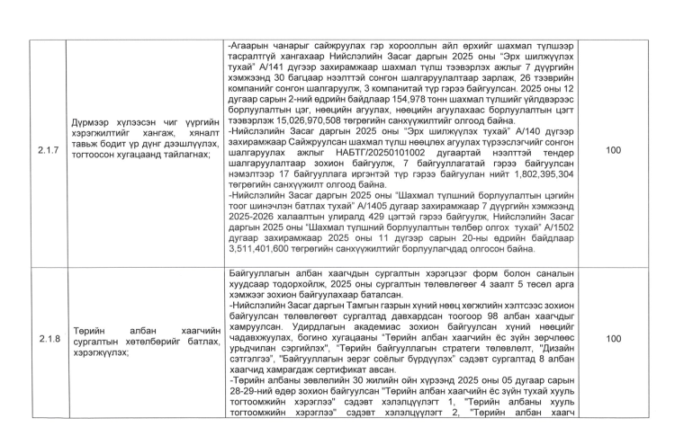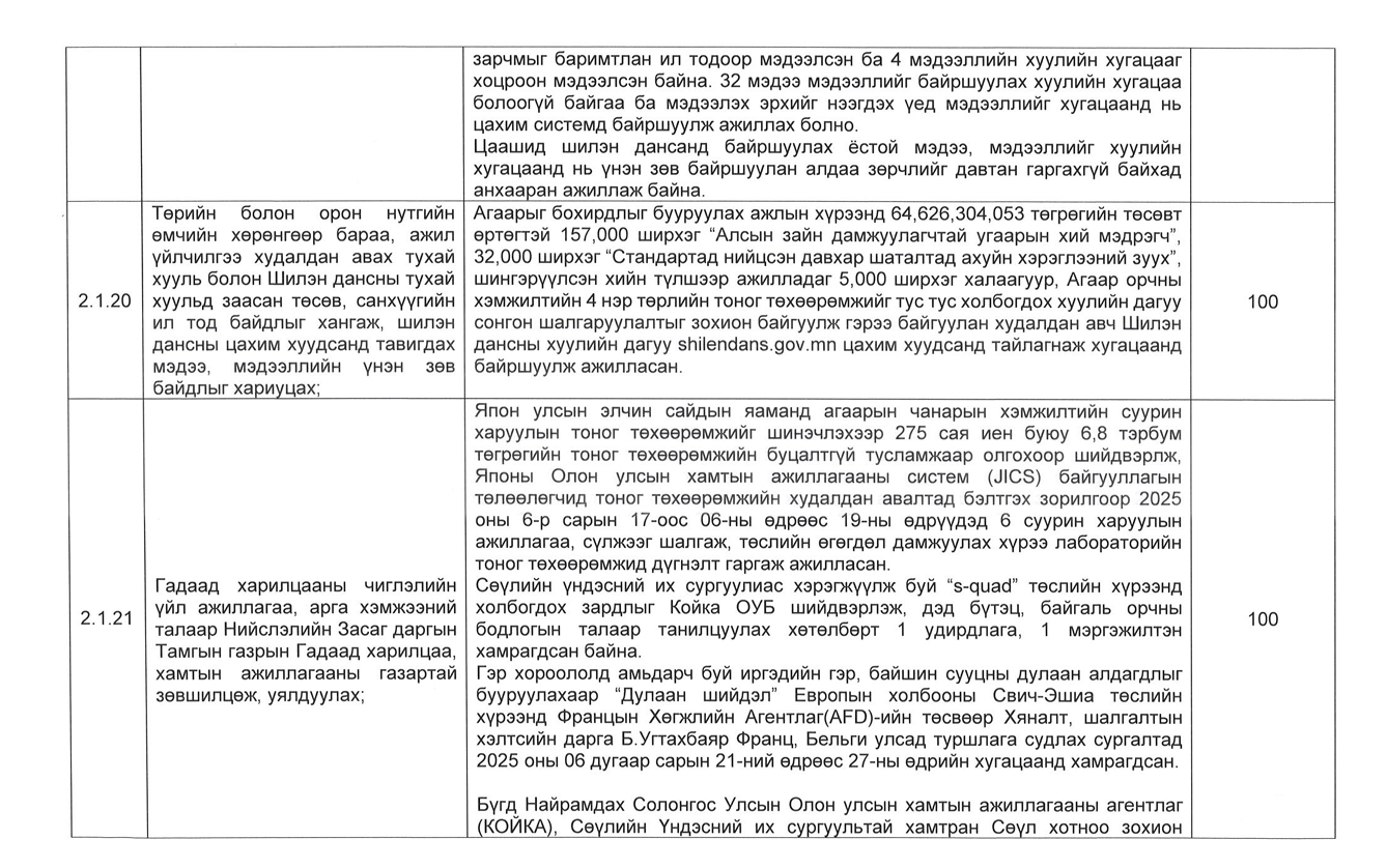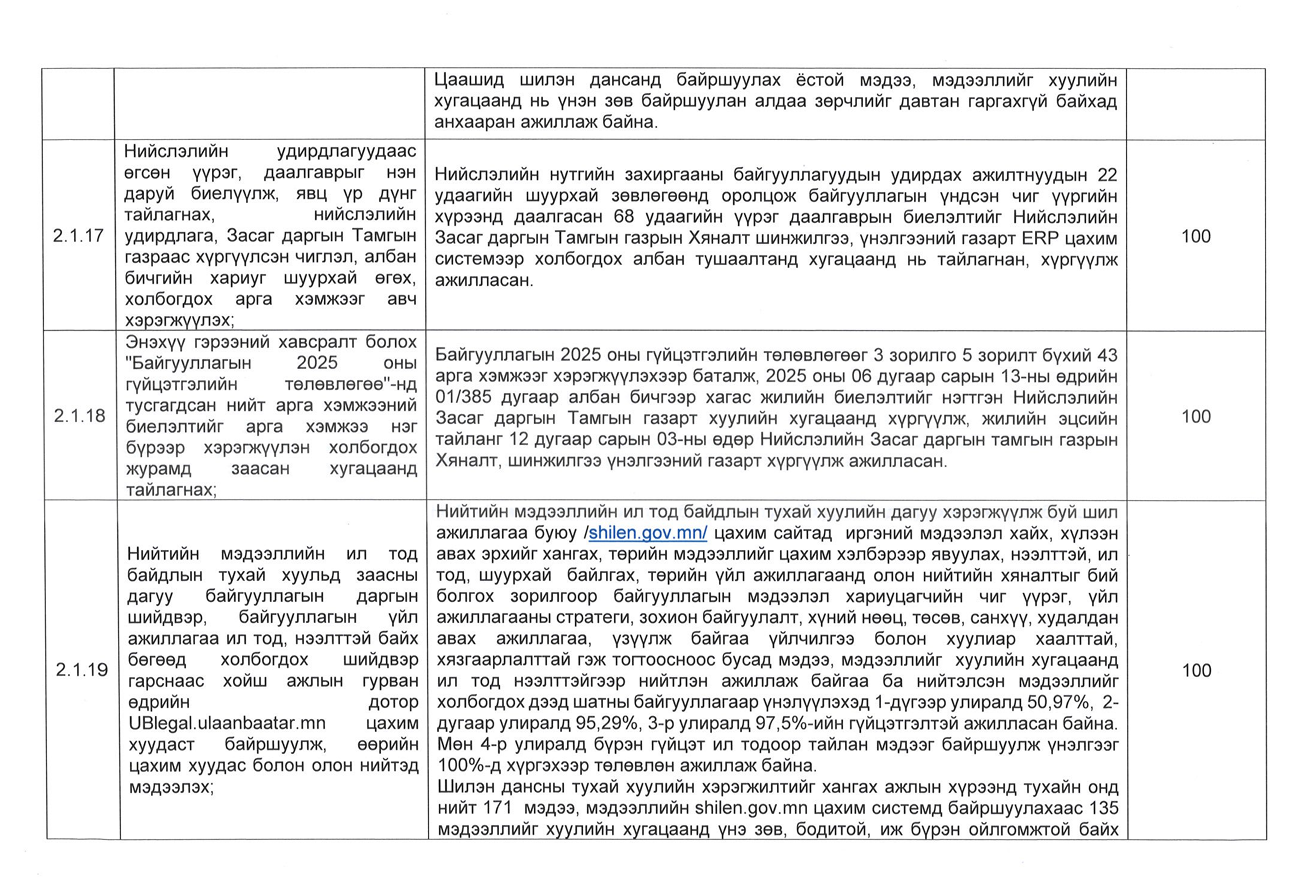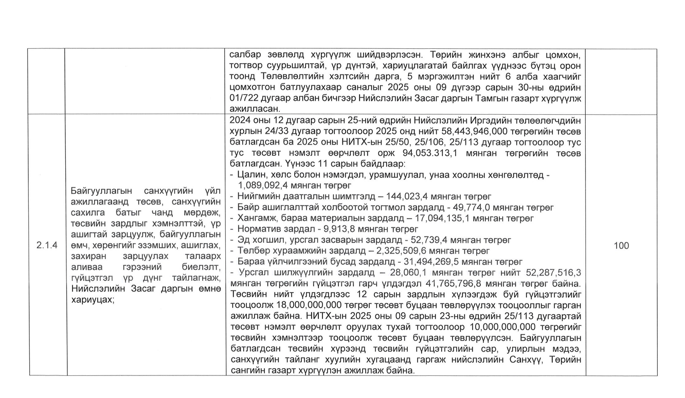Нийслэлийн Агаар, орчны бохирдолтой тэмцэх газар Нийслэлийн Засаг дарга бөгөөд Улаанбаатар хотын захирагчтай байгуулсан "Хариуцлагын гэрээ"-ний 2025 оны жилийн эцсийн биелэлт