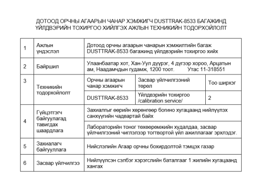 Дотоод орчны агаарын чанар хэмжигч dusttrak-8533 багажинд үйлдвэрийн тохиргоо хийлгэх ажлын даалгавар